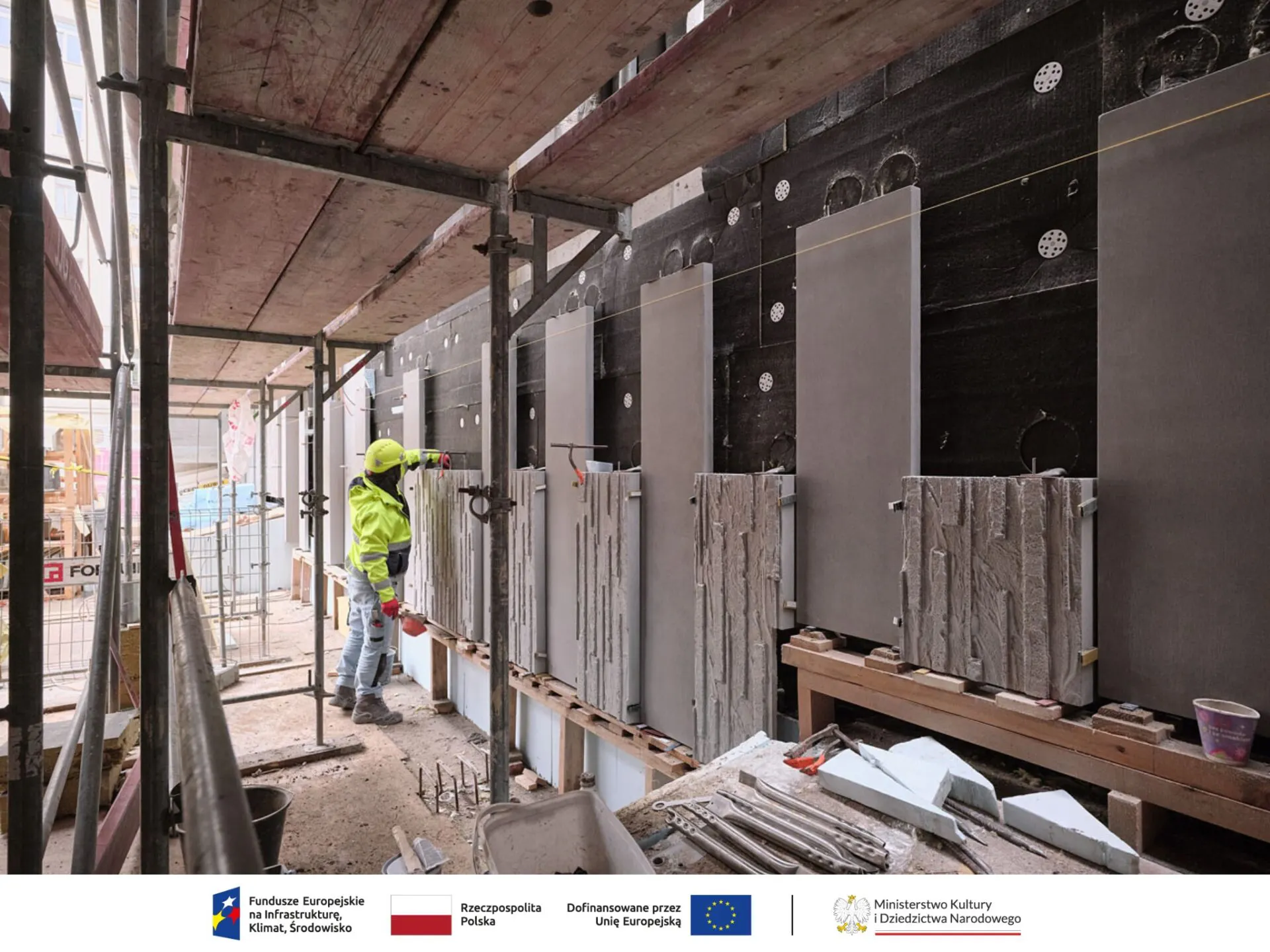 Zakończyliśmy prace przy ostatnich częściach żelbetowej konstrukcji kompleksu MGW. Wschodnia ściana ryzalitu budynku dawnego Szpitala Dziecięcego im. Bersohnów i Baumanów będzie stanowiła element nośny dla płaskorzeźby getta warszawskiego. Wyjątkowo łagodna zimowa aura pozwala kontynuować prace konserwatorskie na elewacjach budynków zabytkowych. Wewnątrz zaś kontynuowane są prace wykończeniowe.